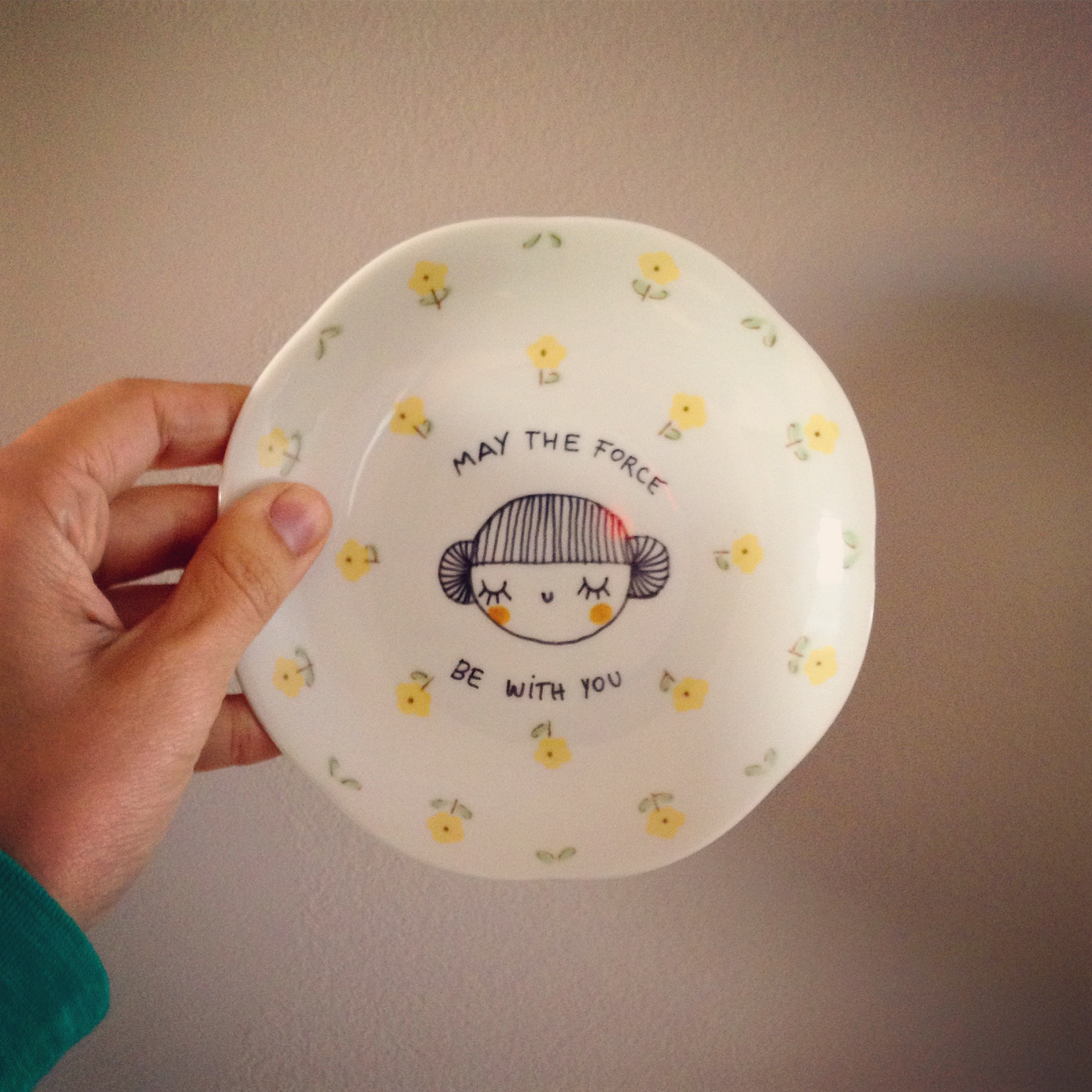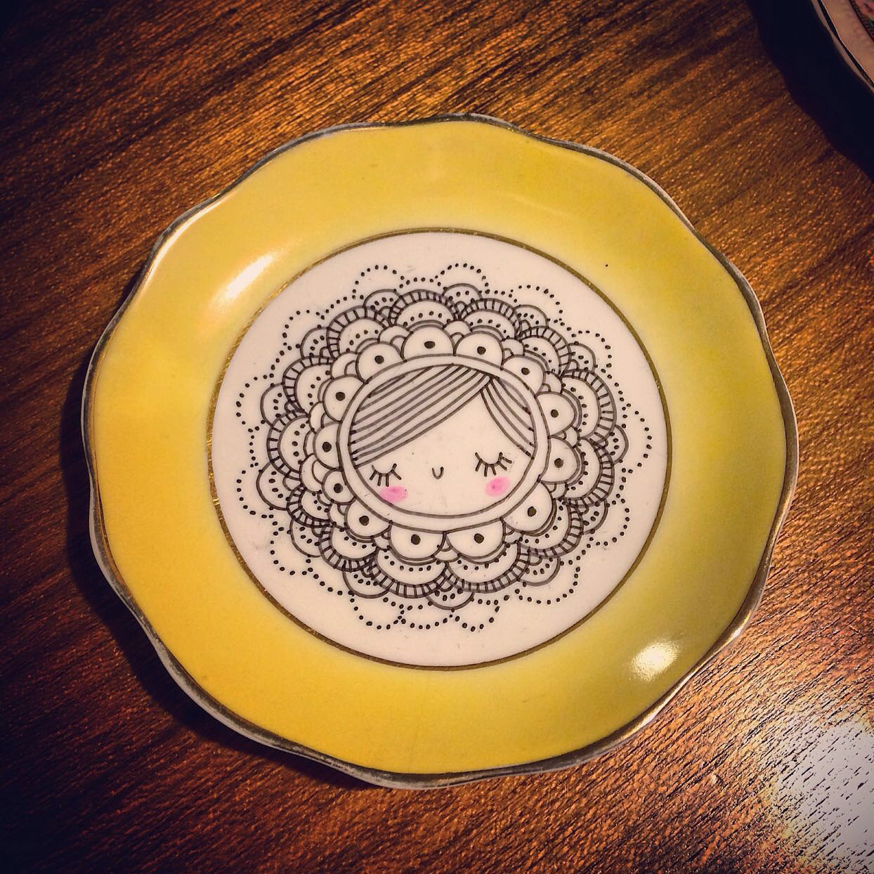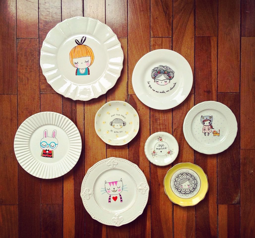 Pratinhos decorativos pintados à mão com caneta permanente.
